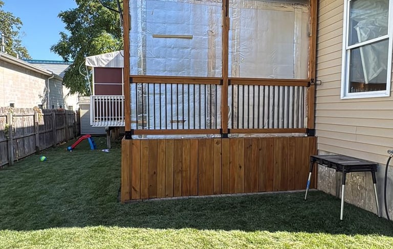 This elevated deck was completely renovated with Trex flooring, a highly durable and low-maintenance material ideal for outdoor spaces. The original wood structure was maintained, while the new Trex surface provides a modern look and excellent weather resistance. Additionally, the railings were preserved and reinforced for added safety and aesthetic appeal. The result is a functional and attractive space, perfect for family gatherings and enjoying the outdoors.