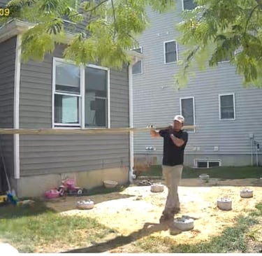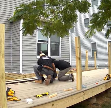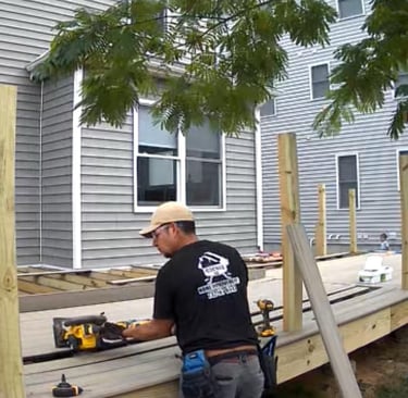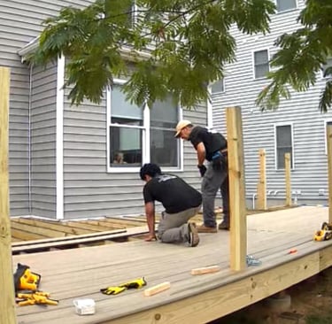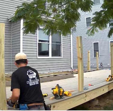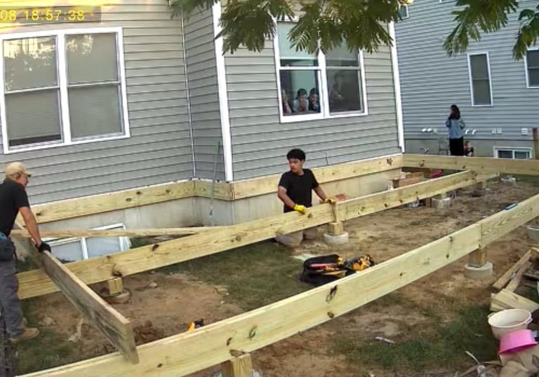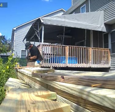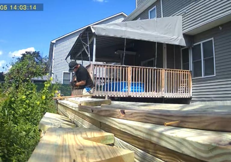 We designed and built an elevated deck using Trex composite boards for the flooring and natural wood framing structure. The Trex surface provides excellent durability, low maintenance, and a modern, clean look, while the wood structure ensures solid support and strength.